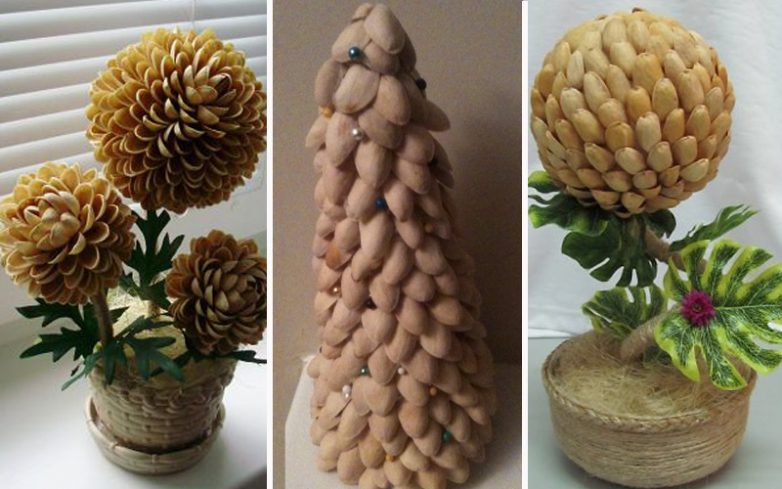 Еще несколько примеров интерьерных деревьев из скорлупы фисташек.