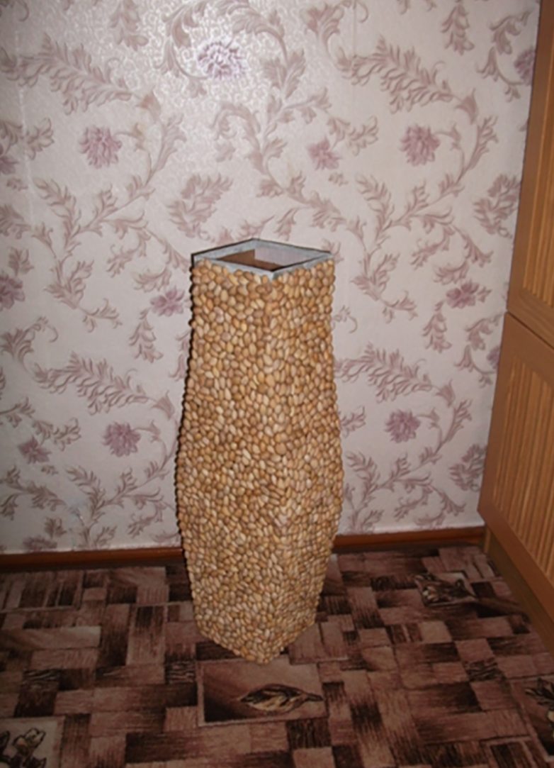 Такая ваза придется по вкусу любителям экостиля.Понадобится время, чтобы собрать нужное количество скорлупы. Сообщи знакомым, что у тебя новое увлечение и нужна помощь. Можно также попросить работников соседнего кафе отдавать тебе этот, на первый взгляд, мусор.