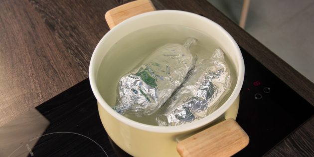 Варите на медленном огне 1,5 часа. Сваренную колбасу достаньте из воды и оставьте остывать до комнатной температуры, не разворачивая.