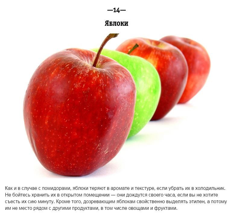 Насчет яблок, киви и апельсинов я могу поспорить.Картофель, лук, чеснок и… яблоки хранятся у меня в холодильнике в отсеке для овощей.Не портятся, не сморщиваются и лежать могут долго.