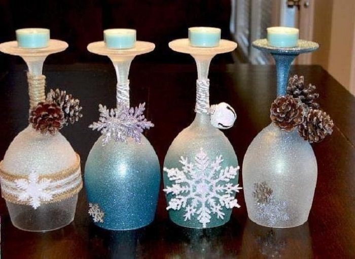 Новогодние подсвечники из бокалов позволяют вдохнуть жизнь в старые, изжившие себя вещи.