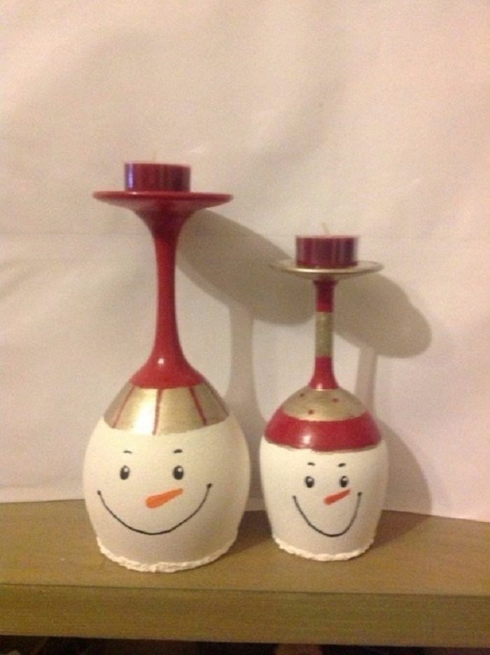 Раскрась старый бокал яркими красками, превращая его в снеговика или Деда Мороза. Я уверена, дети будут в восторге от такого необычного и веселого украшения стола!