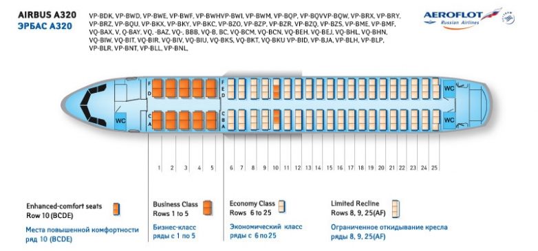 Кто летал, тот знает, как важно удачно выбрать место в салоне. Особенно если это полёт на другой конец мира. Планируя путешествие, заранее изучите схему салона самолёта. Сайтов, позволяющих это сделать, хватает, например Seatguru или Samolety. Достаточно знать номер рейса и тип воздушного судна. Вот так, например, выглядит начинка Airbus A320 из парка «Аэрофлота»: