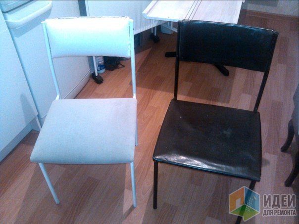 Со стульями вообще смех, муж принёс с работы два металлических стула, с просиженным поролоном, вот такой у них был вид (справа)