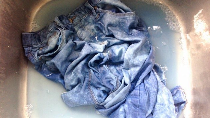 Многие из нас свято уверены, что все эти порошки «для цветного» – всего лишь коммерческий миф. Но это не так. Главная задача таких средств – деактивировать хлор, который содержится в воде и вымывает из ткани краску. И джинсам они просто жизненно необходимы. Если только вы не хотите получить «полинявший» или «выцветший» эффект.