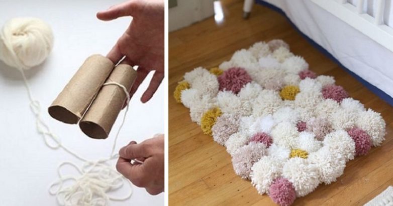Как сделать очаровательный коврик при помощи втулки от туалетной бумаги