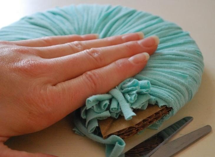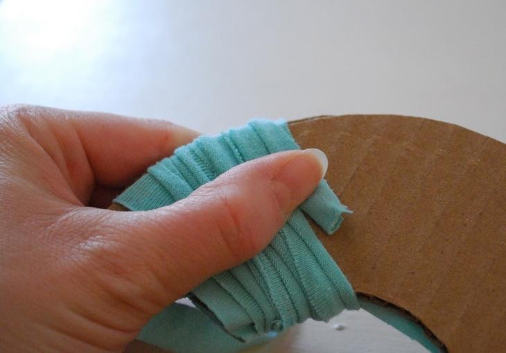 Крепко намотайте полоску на шаблон, чтобы ткань при этом немного растягивалась.