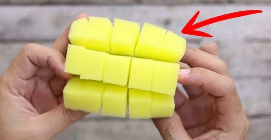 Сделай несколько продольных и поперечных надрезов на губке, чтобы удалить пыль в труднодоступных местах.