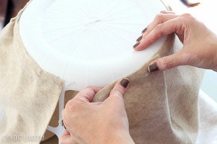 При помощи клеевого пистолета приклейте войлок к корзине, образуя складки, чтобы повторить ее форму.