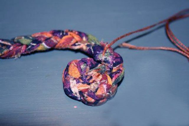 Лирическое отступление: как вариант можно использовать нетрикотажные вещи. Главное, чтобы ткань была мягкая и не сыпалась. Например, старые махровые полотенца. Правда, в трубочку такие полоски не скрутятся.