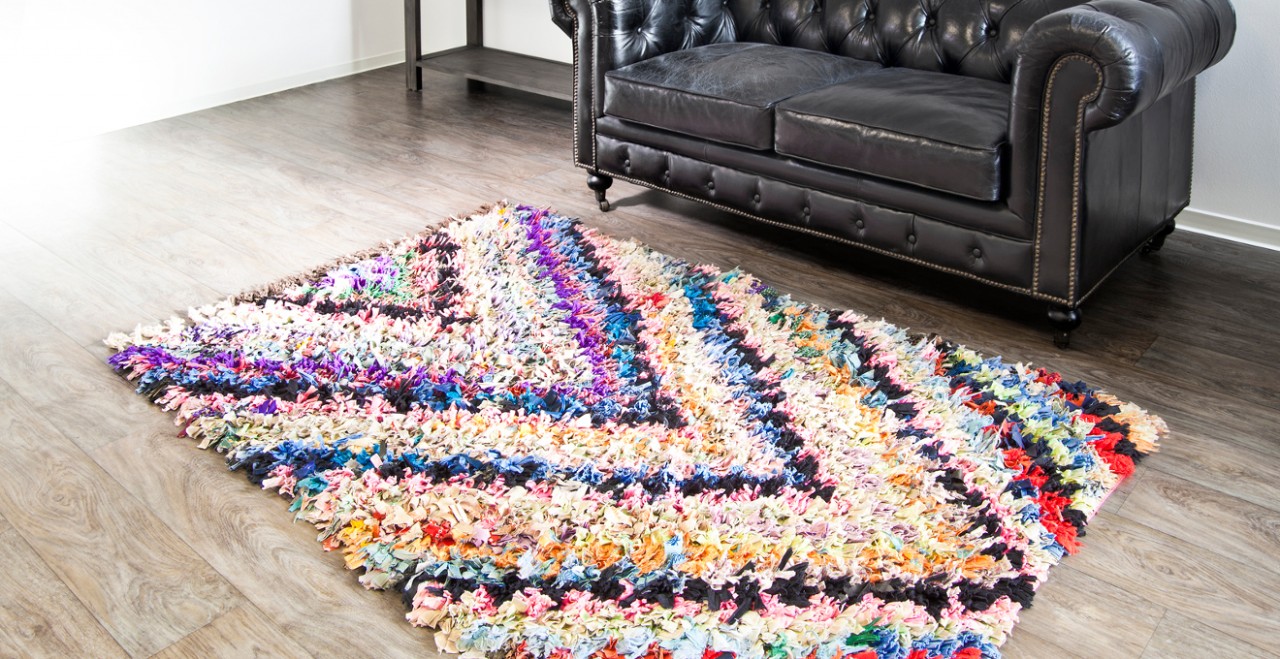 Можно подойти творчески к такому способу и объединить между собой несколько маленьких ковриков в композицию. Здесь главное — подобрать грамотно цвета. Такой коврик впишется в самый новомодный интерьер.
