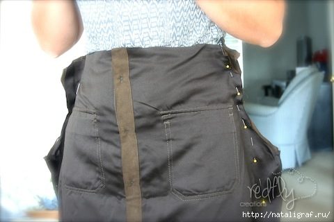 Я бы по какой-то своей юбке наметила боковые швы. И прошила на живую нитку.б)Выворачиваем полученное на левую сторону и надеваем. Хорошо, если на этой стадии будет помощник. Но можно справиться и самой. Убираем по фигуре всё лишнее на боках. Если сзади наша фигура требует, заложим небольшие вытачки, чтобы юбка хорошо села