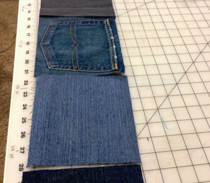 В этом проекте девушка использовала 12 пар джинсов, которые она разрезала на 121 квадратов одинаковых размеров. Сторона квадрата составляла примерно 16,5 см.