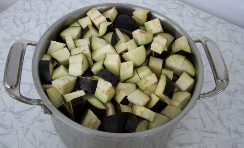 Вскипятите воду, затем поместите в нее кусочки баклажана. Через 2 минуты снимите кастрюлю с огня и дайте воде остыть. Часть остывшей воды (750 мл) перелейте в стеклянную посуду. Хранить ее следует в холодильнике.