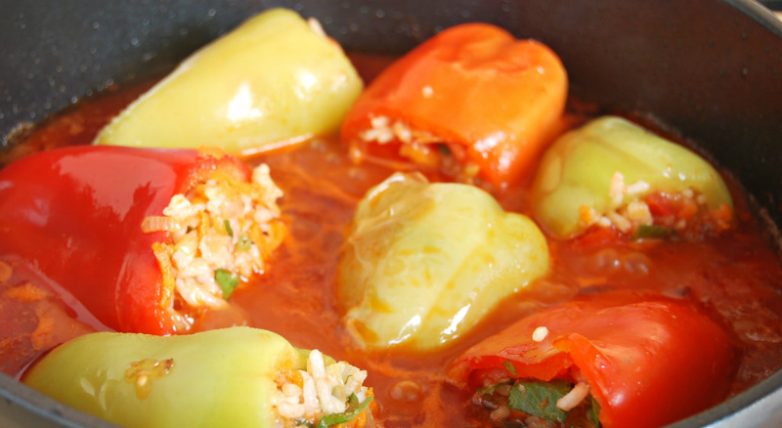 Один из самых чудных домашних полуфабрикатов — фаршированный перец. Быстро готовится (можно использовать тот же фарш, что и для тефтелей), прекрасно сохраняет форму при заморозке.