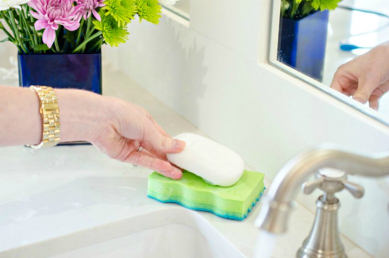 С такой подставки мыло не выскользнет. А еще она впитает лишнюю влагу, так что мыло прослужит дольше.