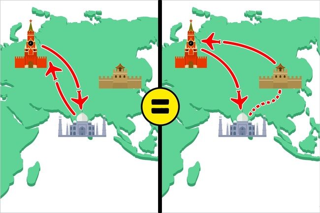 Билет «туда-обратно», как правило, стоит дешевле, чем два билета — один «туда», второй «обратно». И если вам нужно совершить два авиарейса, где в маршрутах совпадает один аэропорт, попробуйте объединить эти рейсы в один «туда-обратно».