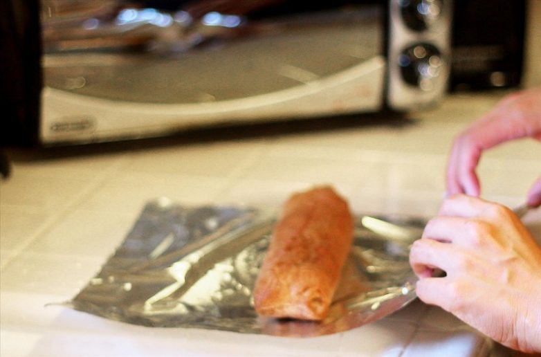 Всё, что вам понадобится, — это фольга, хлеб, холодная вода и духовка. Смочите кусок хлеба холодной водой, плотно заверните его в фольгу.