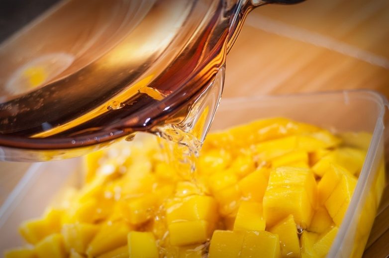 После заморозки продукты можно переместить в контейнер, банку или пакет, который будет запечатываться. Постарайтесь удалить воздух из пакета, так замороженные фрукты сохранятся дольше.