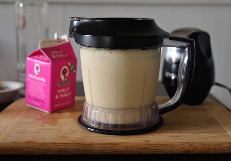 К полученной смеси долейте еще 200 мл сливок. Чтобы у вас образовалась однородная масса, лучше всего сначала смешать только половину ингредиентов, а остальную часть постепенно добавлять в процессе.