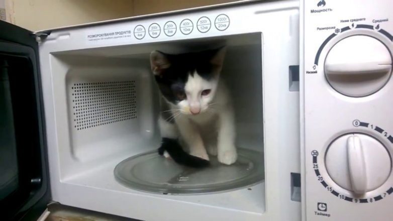 6. Животные обожают коробки, поэтому СВЧ-печь будет прекрасным домом для питомца