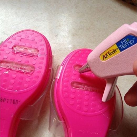 Вам понадобится клеевой пистолет, чтобы любимые босоножки больше не скользили и у вас не было опасности споткнуться и подвернуть ногу.