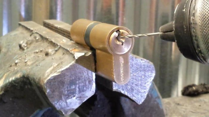 Если просто ножницы не помогают, то придется применить более сложный, но вместе с тем и намного более действенный метод – сверление канавки. Для этого нам понадобится тонкое сверло диаметром 1.5-2 мм. Проделывать паз нужно параллельно ключу. Отверстие должно уходить на глубину не более 2 мм. После этого нужно проделать еще одно отверстие в самом ключе. После этого наклоняем сверло и сверлим ключ под углом на сквозь. Главное — не сломать ключ. Теперь остается только выковырять осколок. После выполнения спасательной операции следует удостовериться в работоспособности замка.