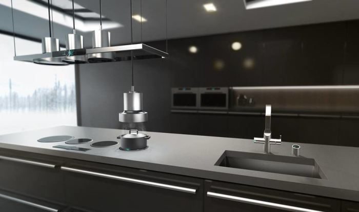 А вот еще один очень интересный симбиоз кухонных устройств: плита для готовки, совмещенная с вытяжкой. Более того, установленная в нее вытяжка еще и «умная», сама может регулировать скорость потока воздуха. Все это сделано для того, чтобы кулинар, стоящий у плиты, мог полностью сконцентрироваться на творческом процессе готовки!