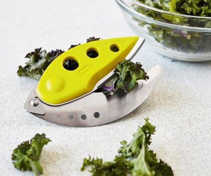 Эти необычные ножницы из нержавеющей стали подойдут как на кухне, так и в саду, ведь они позволяют нарезать зелень и капусту, а заодно и обстригать ветви деревьев. Данный инструмент подойдет для любых овощей и зелени на кухне.