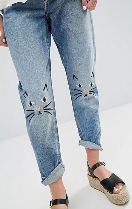 Не даром же прошли уроки труда в школе — кто крестиком умеет вышивать, кто гладью, а кто-то и всеми вышеперечисленными техниками. При желании можно найти туториалы и вышить какую-нибудь невероятную, например, цветочную композицию. Сами выбирайте цветовую гамму, которая будет наилучшим образом гармонировать с вашим гардеробом. Ну, а если вышивка гладью — это не про вас, попробуйте грубые стежки белыми нитками — выглядит свежо и эффектно.