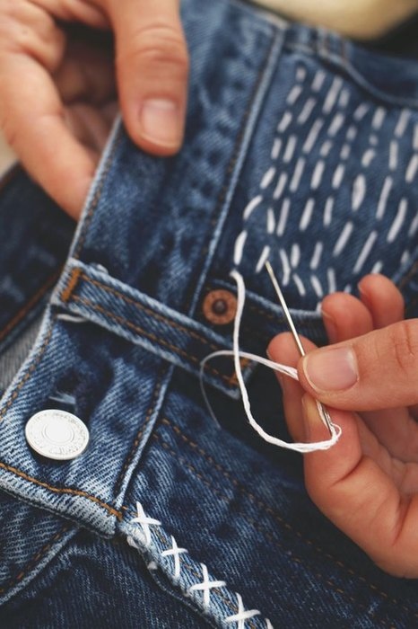 Вдохновляющая цитата из книги, строчки из любимой песни или же фраза уважаемой вами личности (только не забудьте проверить ее на точность и подлинность) — все украсит ваши джинсы. В ход могут пойти иголки и нитки, при желании — перманентные маркеры. Поделитесь своими идеями с