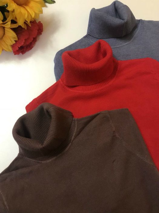 Внешний вид базовых водолазок и гольфов особо не меняется. Поэтому их можно смело брать на распродажах и по выгодным предложениям. Можно сразу закупить такие гольфы в нескольких цветах и использовать для формирования разных комплектов.