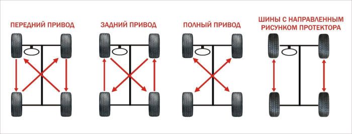 Задние шины на заднеприводном автомобиле подвергаются более высокой нагрузке, чем передние. Чтобы избежать неравномерного износа, производители рекомендуют каждые 10 тыс. км переставлять шины с задней оси на переднюю и наоборот.