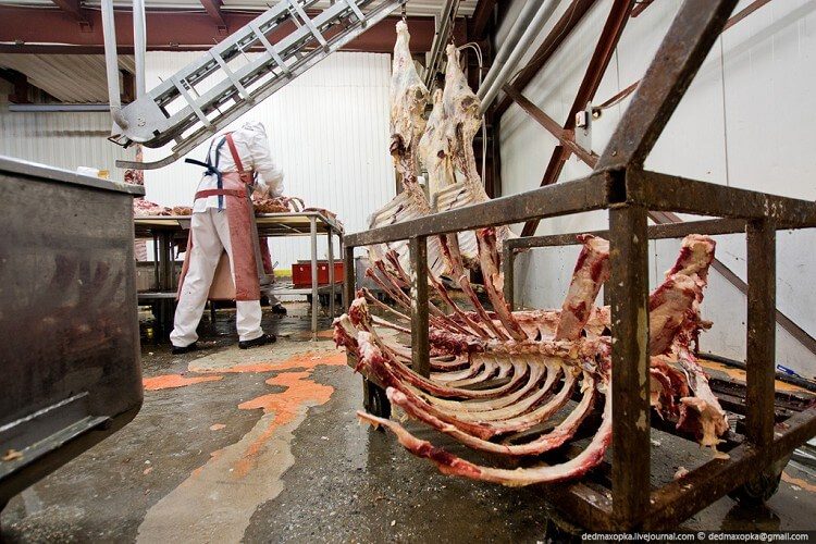 Что такое обвалка? Это кости, шкуры, обрезанные тушки кур и прочей мертвечины, которые засовывают в специальный барабан (наподобие стиралки), он крутится, остатки того, что осталось на этих “продуктах” за счёт ударов о стенки отстаёт от костей и сваливается в некое подобие фарша из соединительных тканей, жира и прочих радостей.