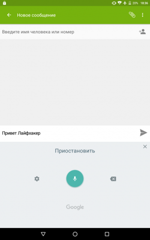 Не совсем печать, но ведь голосовой набор текста — тоже набор, правда? В некоторых ситуациях гораздо проще надиктовать послание, чем попадать по нужным клавишам, постоянно сбиваясь. Система автоматически распознает текст, а вам останется лишь нажать на кнопку отправки.