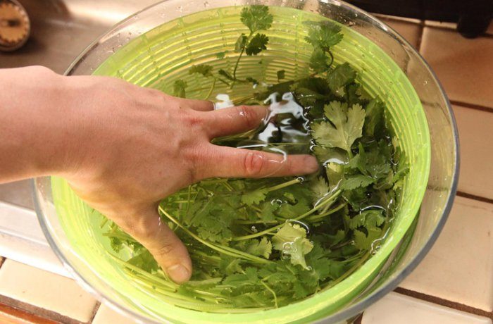 Если укроп и петрушка перед подачей на стол не первой свежести, реанимировать их можно, замочив пучок в растворе воды с уксусом. Результат не заставит себя долго ждать!