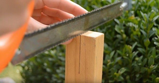 Распиливаем ножовкой по начерченному следу. На этот паз будет одеваться бутылка.