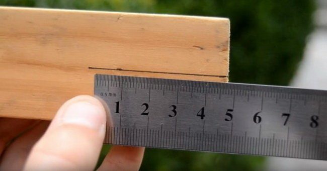 В глубину делаем распил на ширину лезвия от канцелярского ножа.