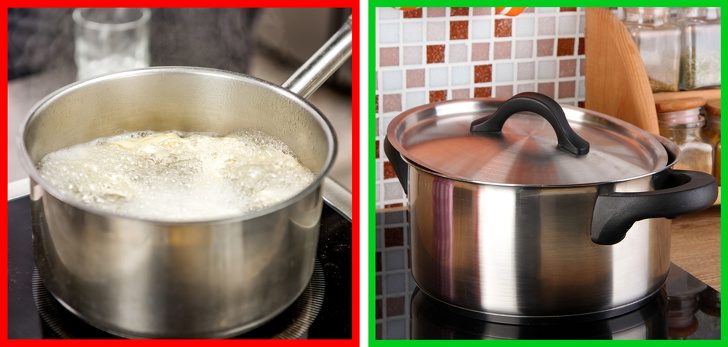 Не забывайте накрывать кастрюли крышками в процессе приготовления еды: это существенно сократит время закипания и затраты электроэнергии до 60 %.