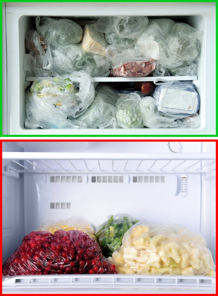 Не заставляйте морозильную камеру работать вхолостую. Она не должна быть пустой. При открывании дверцы весь холодный воздух выйдет, и прибору понадобится дополнительная энергия, чтобы вновь его охладить.В то же время не рекомендуется заполнять морозилку доверху: должно оставаться немного пространства, благодаря которому воздух сможет циркулировать. Производители рекомендуют оставлять запас около 10–20 %.
