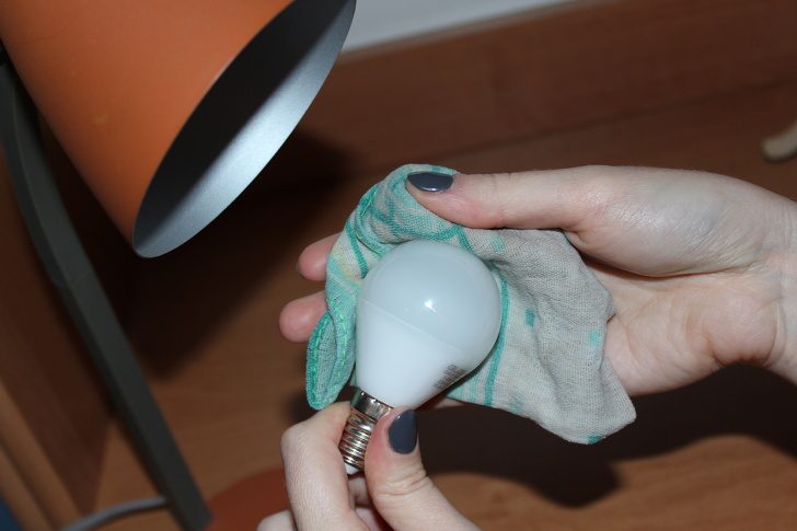 Очистить лампочки можно перьевой щеткой для пыли, сухой или слегка влажной тряпкой. Главное, убедитесь в том, что лампа остыла после использования.