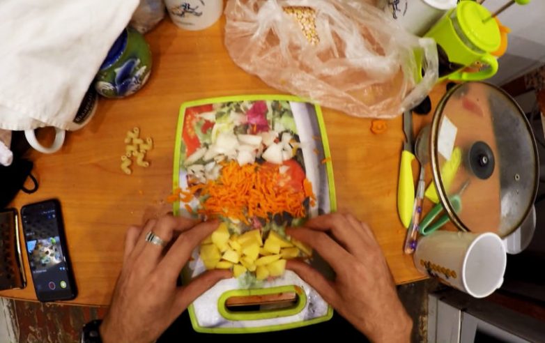 Из гороха и картофеля, общей стоимостью 3 рубля 61 копейка, Марк сварил суп-пюре. Также молодой человек приготовил макароны, а оставшиеся овощи — морковь и лук — использовал для поджарки.