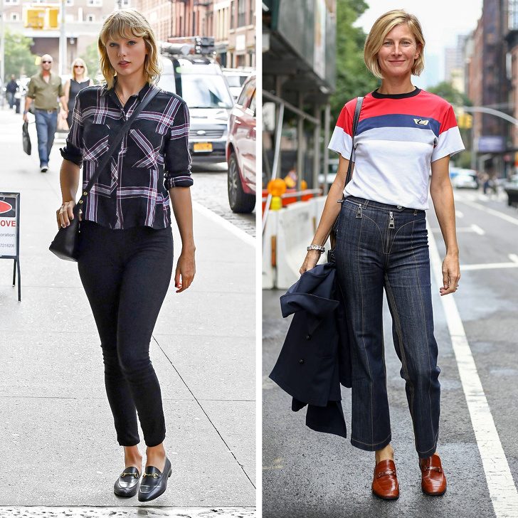 С чем носить: Конечно, беспроигрышным вариантом образа, завершенного лоферами, будет одежда в деловом стиле: брюки или юбка, жакет и блузка. Но если правильно подобрать цвета, то и с джинсами любой модели лоферы будут выглядеть стильно и органично. Не бойтесь надевать их с платьями, подчеркивающими женственность, — некоторая грубость туфель сделает образ еще более нежным.