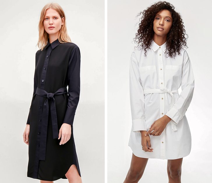 Платье-рубашка хоть и напоминает один из самых главных мужских предметов гардероба, однако это идеальная основа для любого, даже самого нежного образа. Несмотря на многообразие моделей и расцветок, тем, кто хочет вложить деньги в универсальную вещь, стоит обратить внимание на модели все тех же нейтральных цветов и классического кроя, а именно на те, что выглядят как обычная, только удлиненная мужская сорочка.