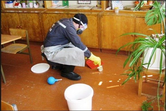 Комнату, которую вы очистили от ртути, промывайте несколько раз в день раствором марганцовки, а также мыльно-солевым раствором (на ведро воды четверть бруска хозяйственного мыла, натертого на терку, и 25 грамм соды). Мыть лучше несколько раз в сутки на протяжении трех дней.