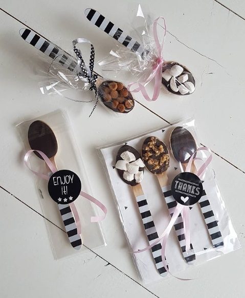 И еще один простой вариант необычного сладкого подарка, который вы легко сможете приготовить у себя на кухне. Растопите горячий шоколад и обмакните в него ложку (лучше заранее купить деревянные, а не пластмассовые). Украсьте кокосовой стружкой или маленькими зефирками — и ваш оригинальный и вкусный подарок готов.