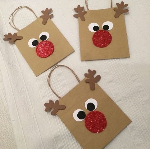 Чтобы вместить все ваши оригинальные подарки, понадобится не менее креативная упаковка. Не стоить тратиться на новогодние бумажные сумки: можно купить самые обычные из крафта и вот так просто их украсить.