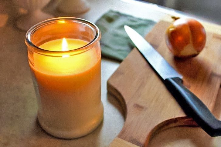 Мир знает много хитростей, как не плакать во время нарезки лука. Вот еще одна: поставьте возле доски зажженную свечу. Пламя устранит вещества, заставляющие вас лить слезы.