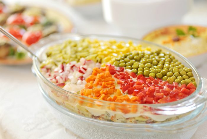Посуда тоже играет немаловажную роль при подаче блюд. Так что, если хотите удивить гостей, подайте классический салат оливье в стеклянных вазочках или стаканах.