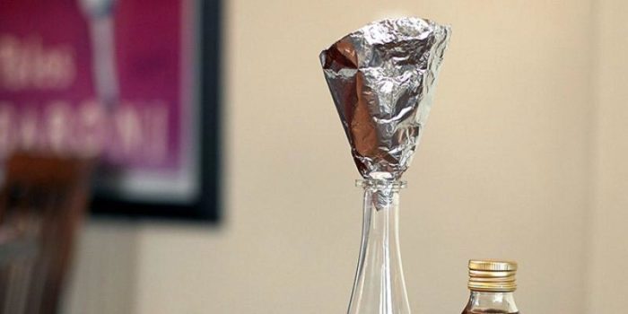 Дома нет подходящей воронки? Если есть фольга, то и эта проблема может быть изящно решена при помощи данного материала. Самое главное, что потом ее можно обратно развернуть и пустить фольгу на решение другой задачи.